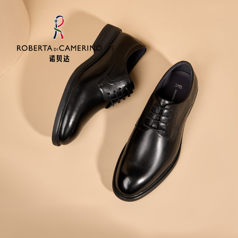 诺贝达商务正装皮鞋男士休闲系带圆头真皮婚礼结婚新郎高档德比鞋