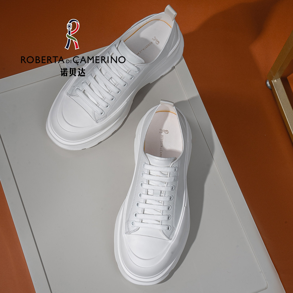 诺贝达2025百搭厚底百搭小白鞋休闲系带简约风板鞋女RCS255411