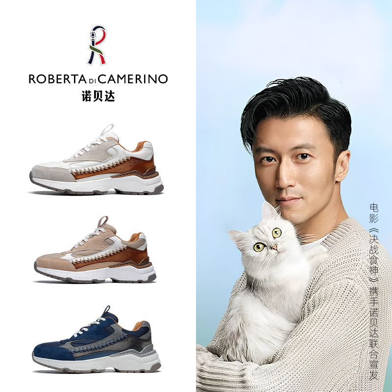 诺贝达男鞋秋冬季男士时尚运动鞋真皮厚底休闲鞋舒适户外老爹鞋子