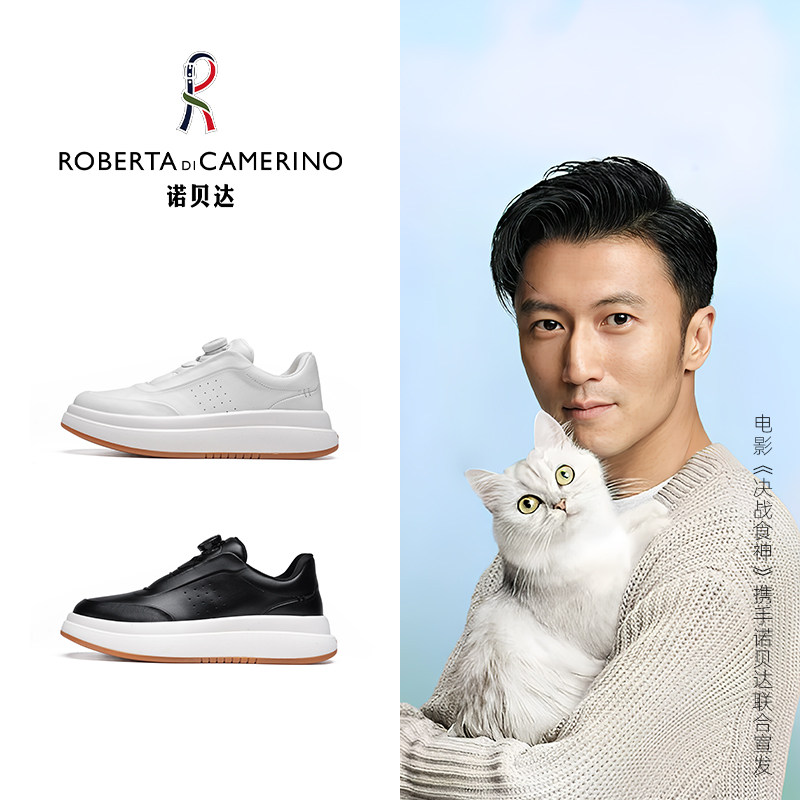 诺贝达男鞋秋冬季男士休闲板鞋进口头层牛皮旋转扣厚底小白鞋子潮