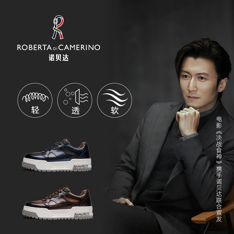 诺贝达男鞋秋冬季男士商务休闲皮鞋男真皮手工改色板鞋加州工艺鞋