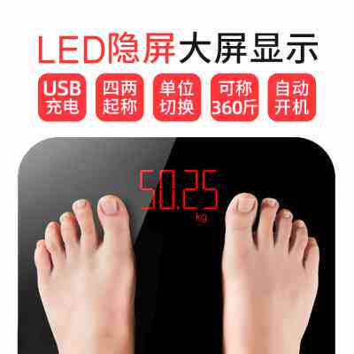 LED隐屏体重秤电子称家用精准体脂秤宿舍耐用充电款称重计人体秤