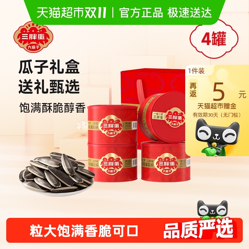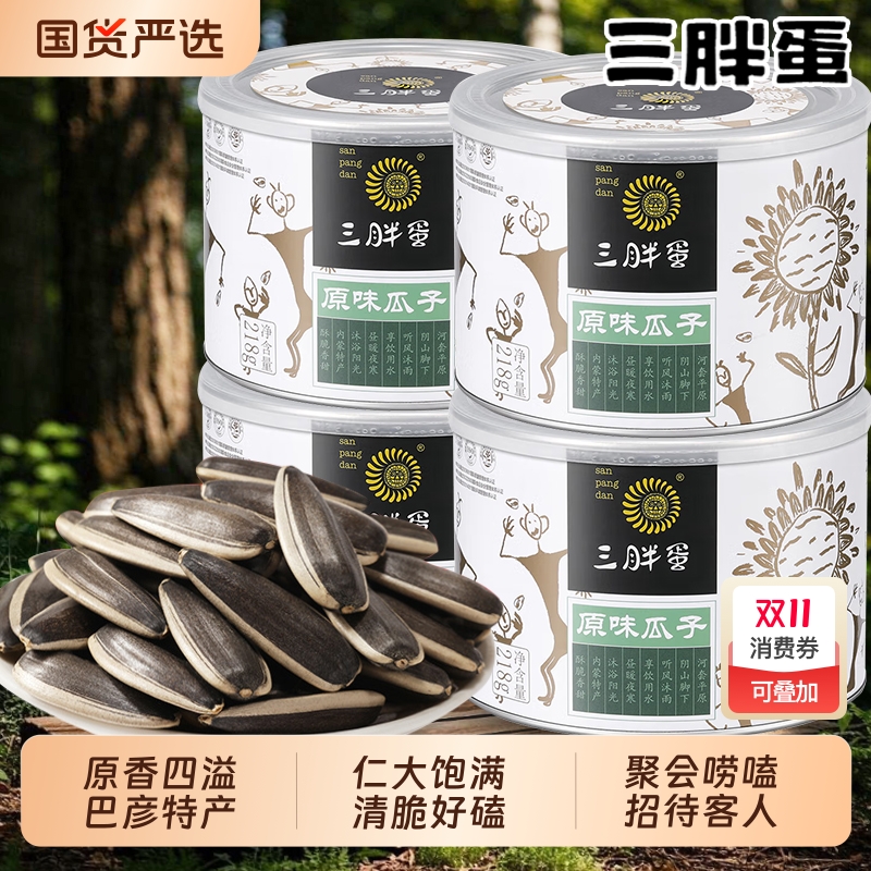 三胖蛋旗舰店五香瓜子罐装内蒙特产葵花籽坚果炒货休闲零食168gx4