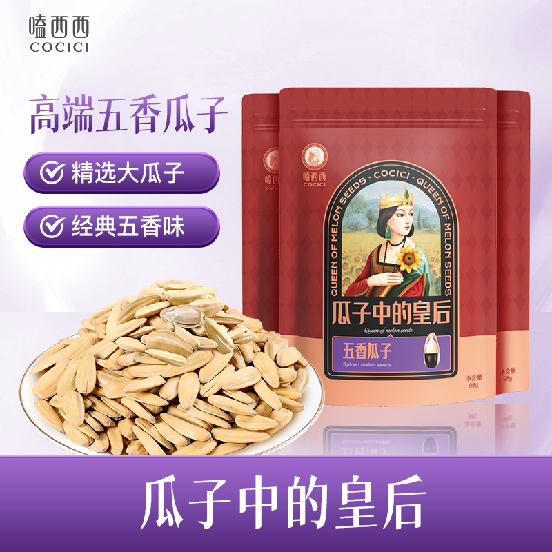 嗑西西高端五香瓜子大颗粒98g袋装葵花籽内蒙古特产休闲聚会零食