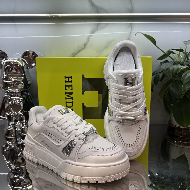 欧货名品HEMDISS头层牛皮铆钉重工艺时尚轻奢百搭高端厚底小白鞋