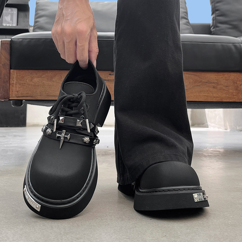 小众朋克风大头皮鞋男厚底发型师巴黎铆钉德比鞋哑光流米奇鞋增高