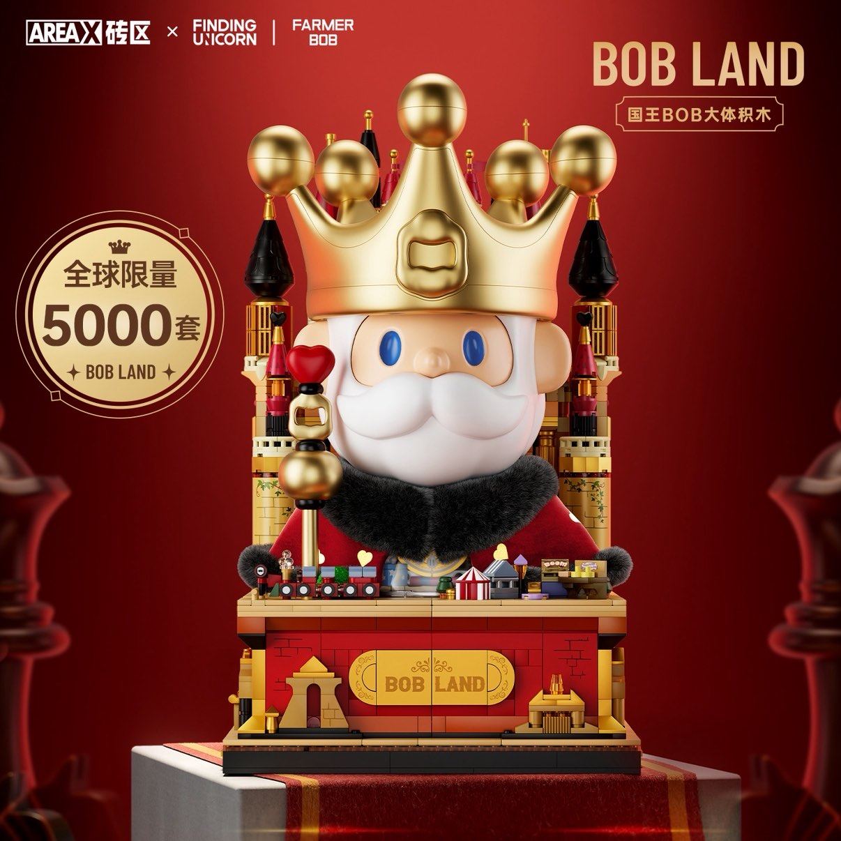 【全球限量】AREAX砖区寻找独角兽FARMERBOB国王积木摆件男生礼物