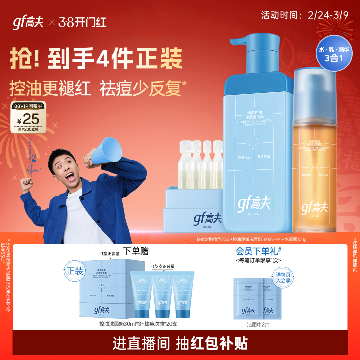 【新年礼物】高夫男士护肤品套装控油祛痘礼盒洗面奶水乳男生礼物