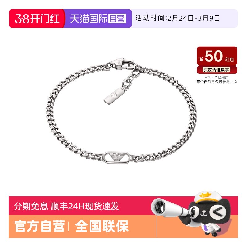 【自营】Armani阿玛尼LOGO系列手链男鹰标古巴简约银色送男生礼物