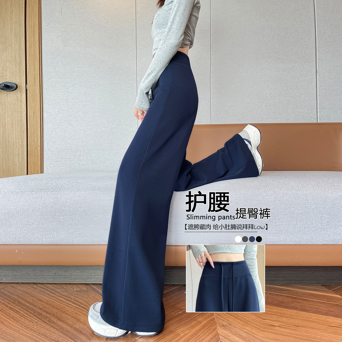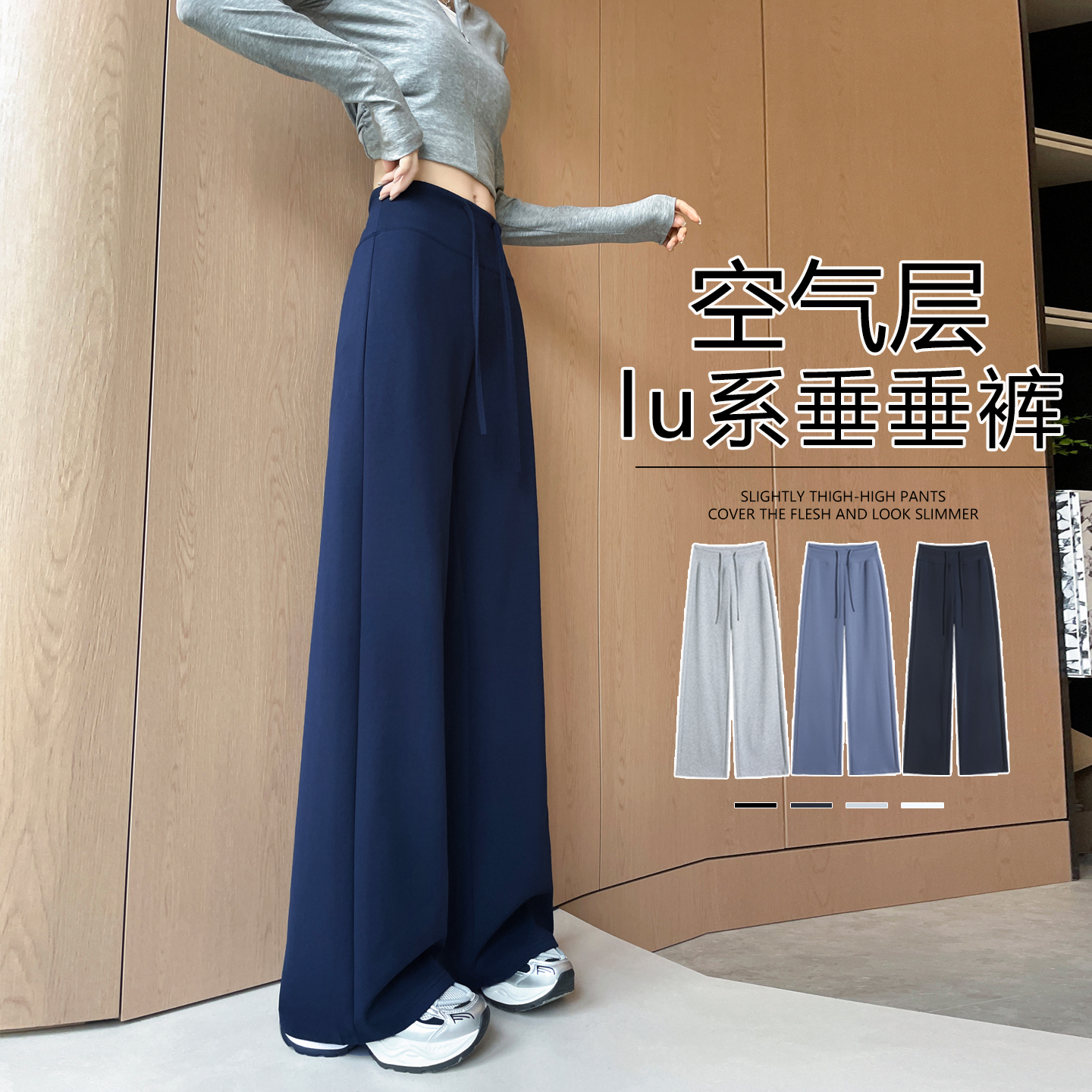 瑜伽阔腿裤女春秋高腰垂感窄版直筒空气层宽松显瘦休闲运动卫裤子