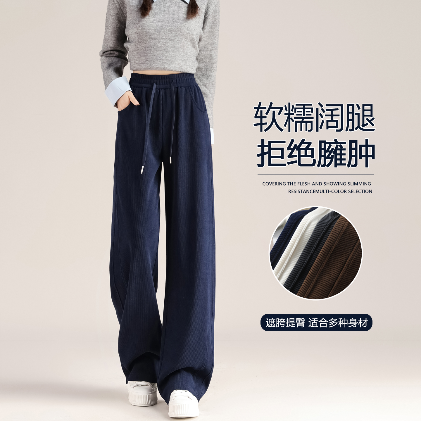 仿羊绒阔腿裤女秋冬新款高腰垂感休闲裤宽松慵懒窄版直筒糯米裤子