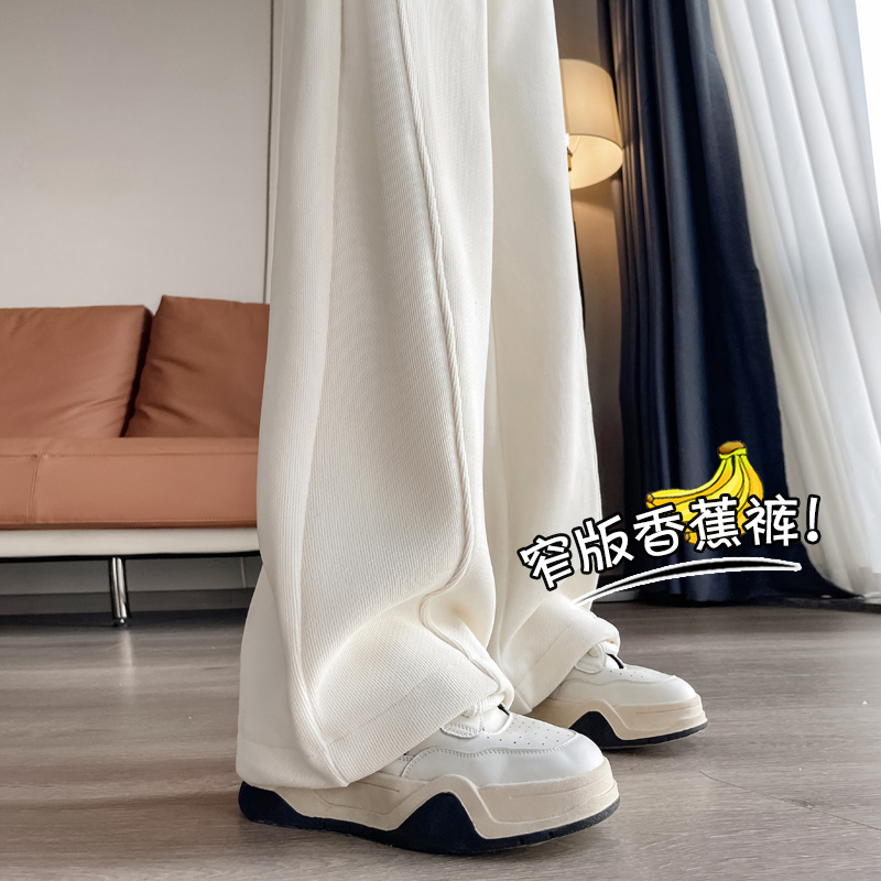 白色雪尼尔阔腿裤女秋冬高腰垂感休闲裤窄版直筒镰刀加绒香蕉裤子