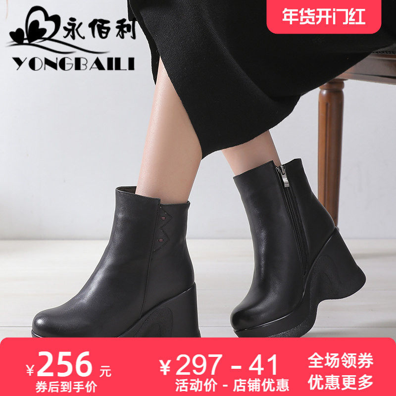 2026新款加绒棉鞋牛皮厚底短靴女高跟休闲女靴皮鞋马丁靴棉靴女鞋