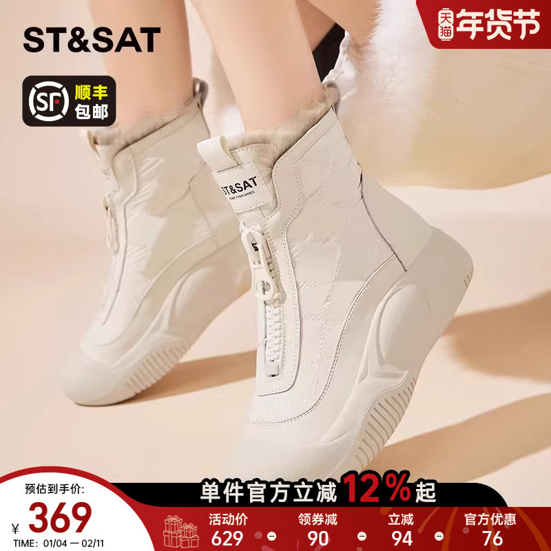 星期六女鞋冬季新款保暖拉链雪地靴女马丁靴休闲加厚保暖防滑棉靴