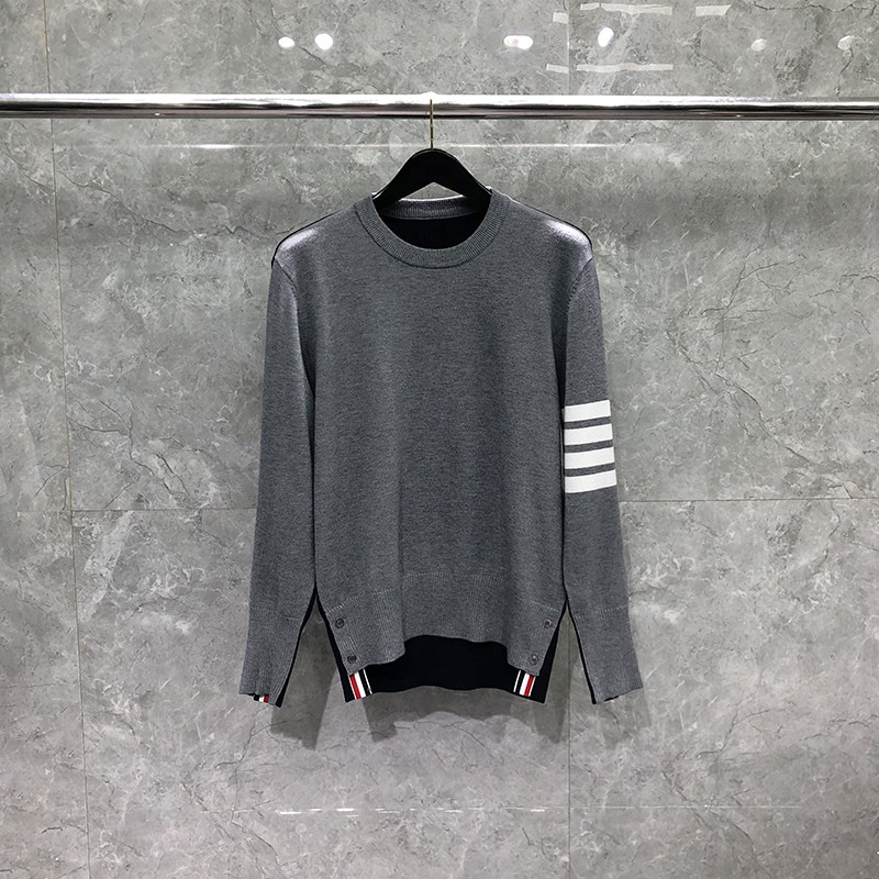tb针织毛衣新款春秋前后拼色前短后长圆领男女款时尚潮流百搭外套