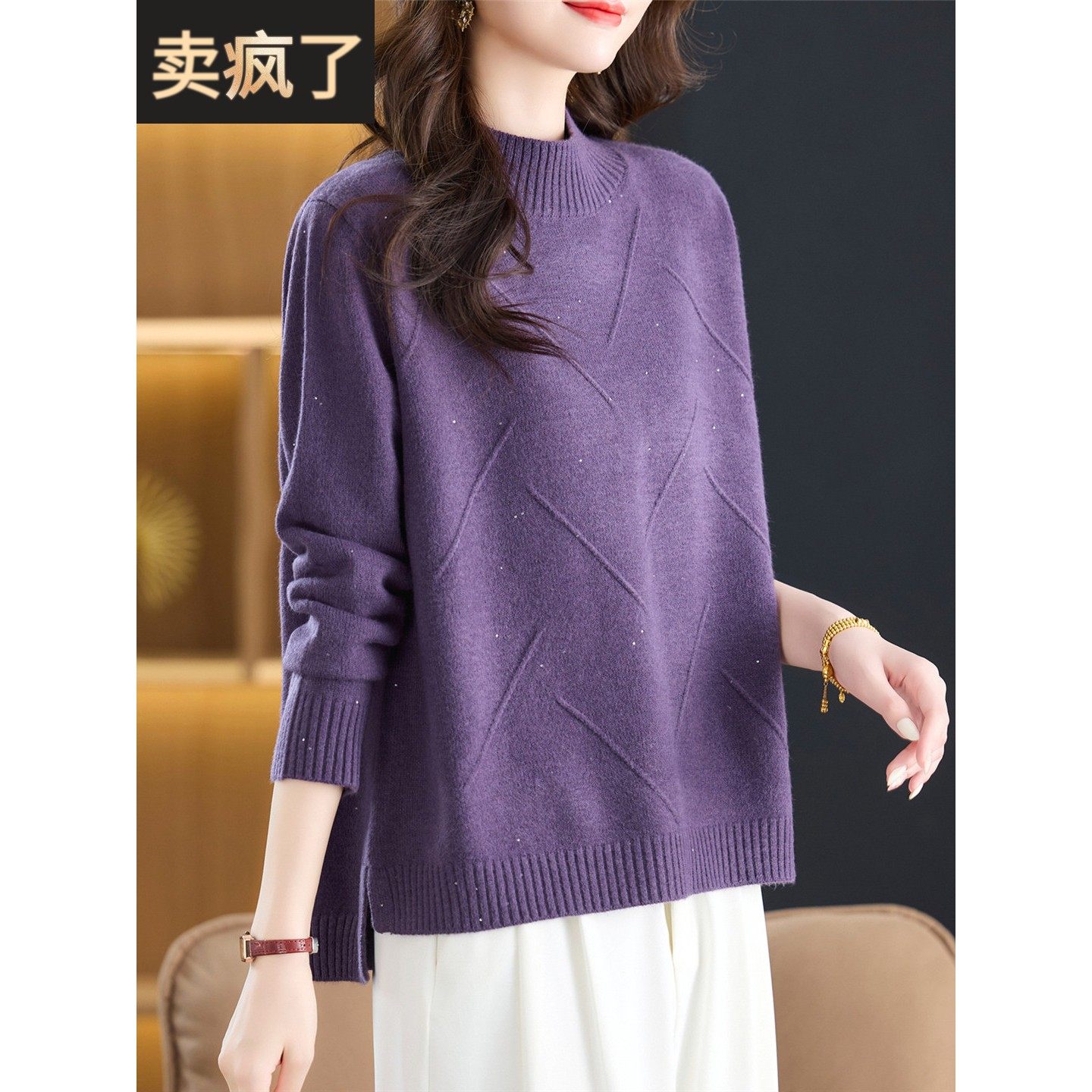 半高领羊毛衫毛衣女前短后长针织打底衫宽松内搭上衣中老年妈妈装