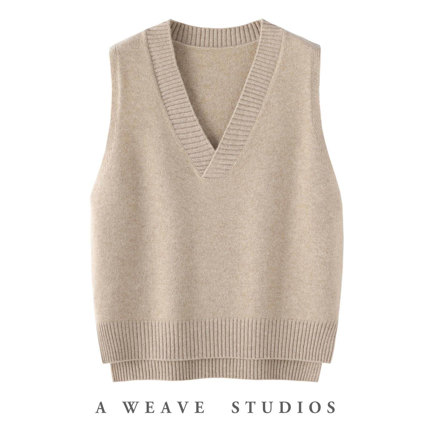 高端25年冬季加厚100%纯羊毛马甲毛衣背心女v领宽松前短后长叠穿