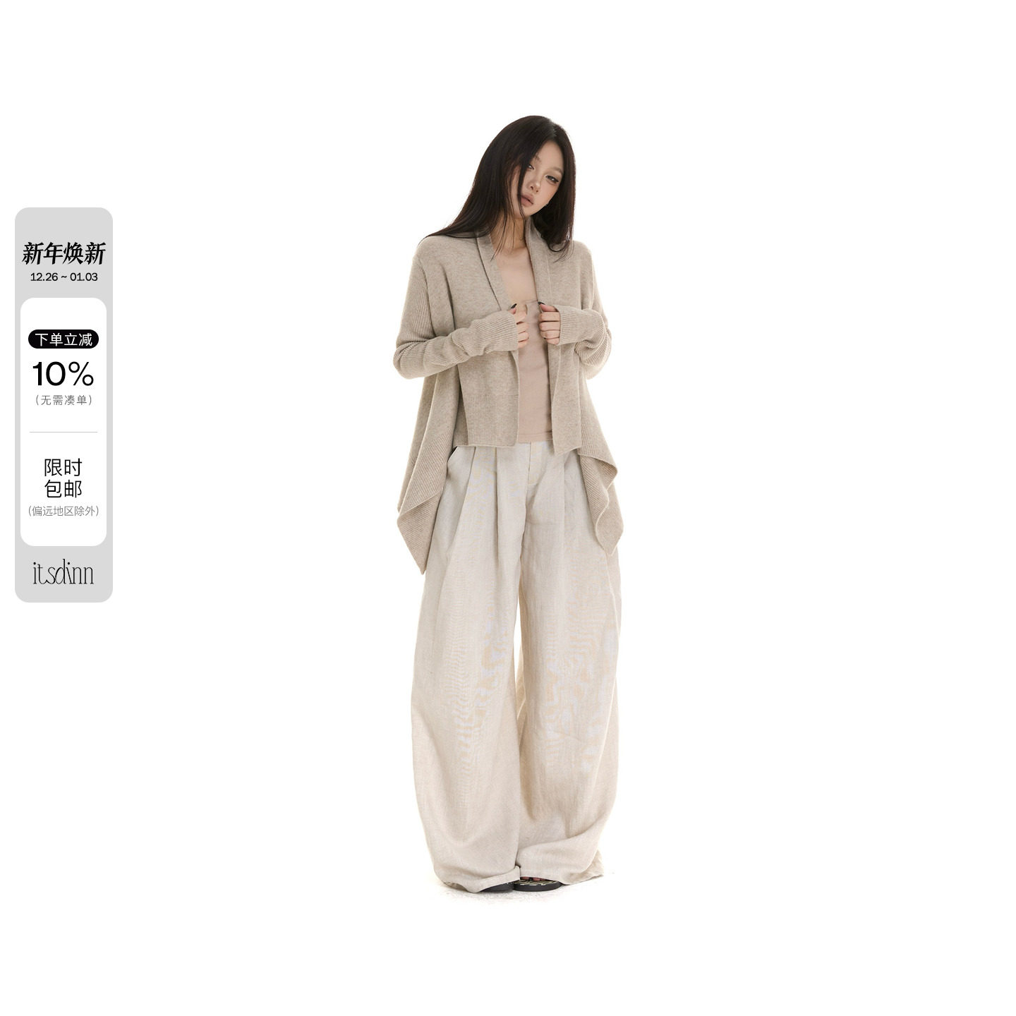 itsdinn 纸片人 堆叠领厚毛衣开衫外套女前短后长设计感2025秋冬