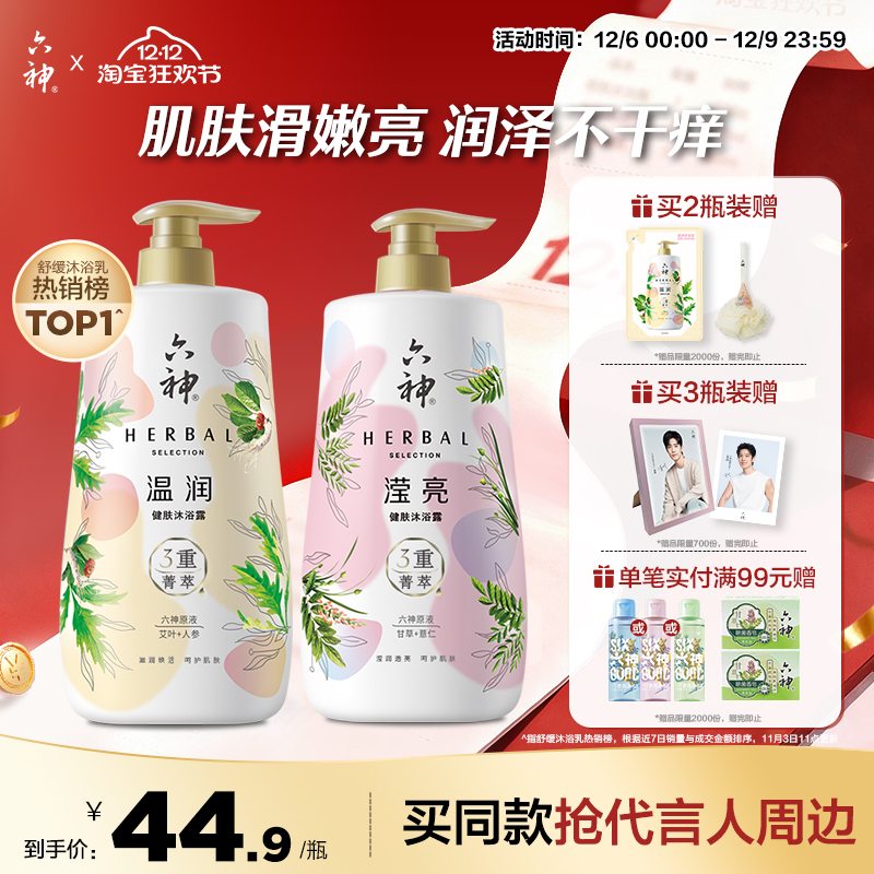 肖战同款六神菁萃沐浴露官方正品秋冬滋润舒缓祛痘焕亮沐浴露1L