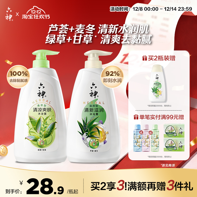[秒杀]六神经典款沐浴露家庭装大容量持久留香润肤保湿补水沐浴乳