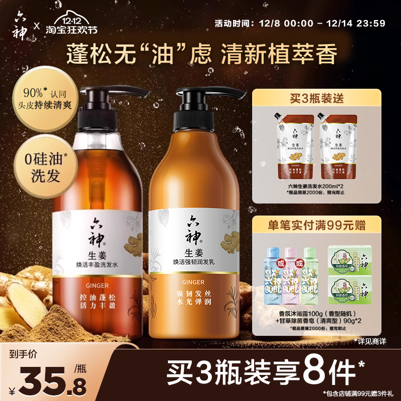 六神生姜洗发水洗发露控油蓬松焕活720ml护发素柔顺亮泽秀发720ml