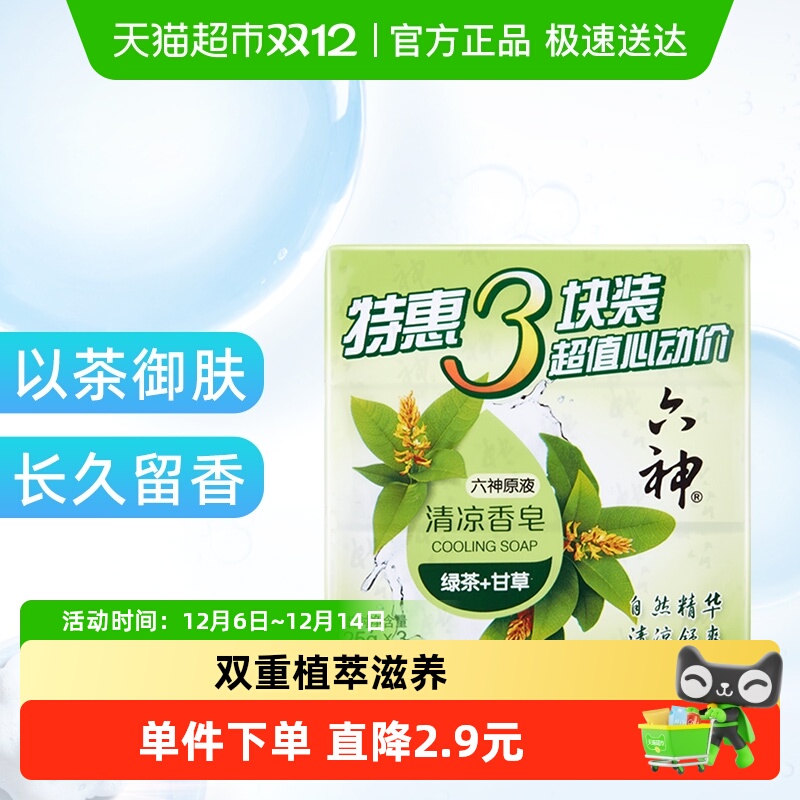 六神绿茶清凉香皂香味持久留香除菌全身可用家庭装125g*3块