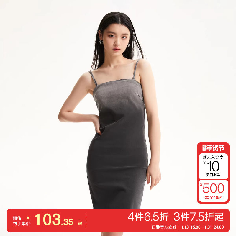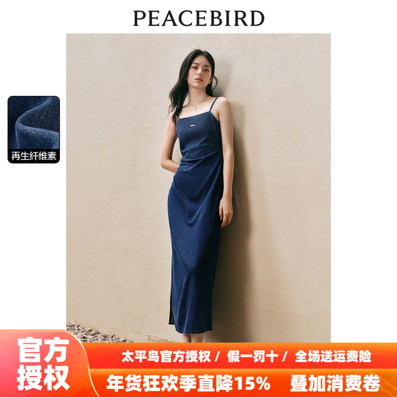 太平鸟女装吊带牛仔连衣裙秋新款修身法式无袖裙时尚小众连身裙潮
