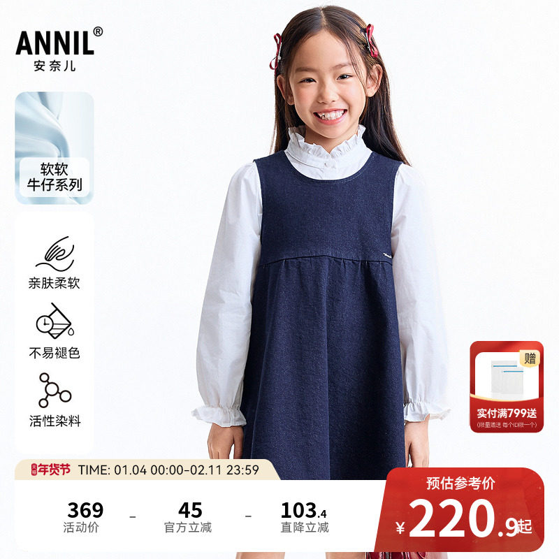 【商场同款】安奈儿童装女童无袖牛仔连衣裙秋新款XG533200