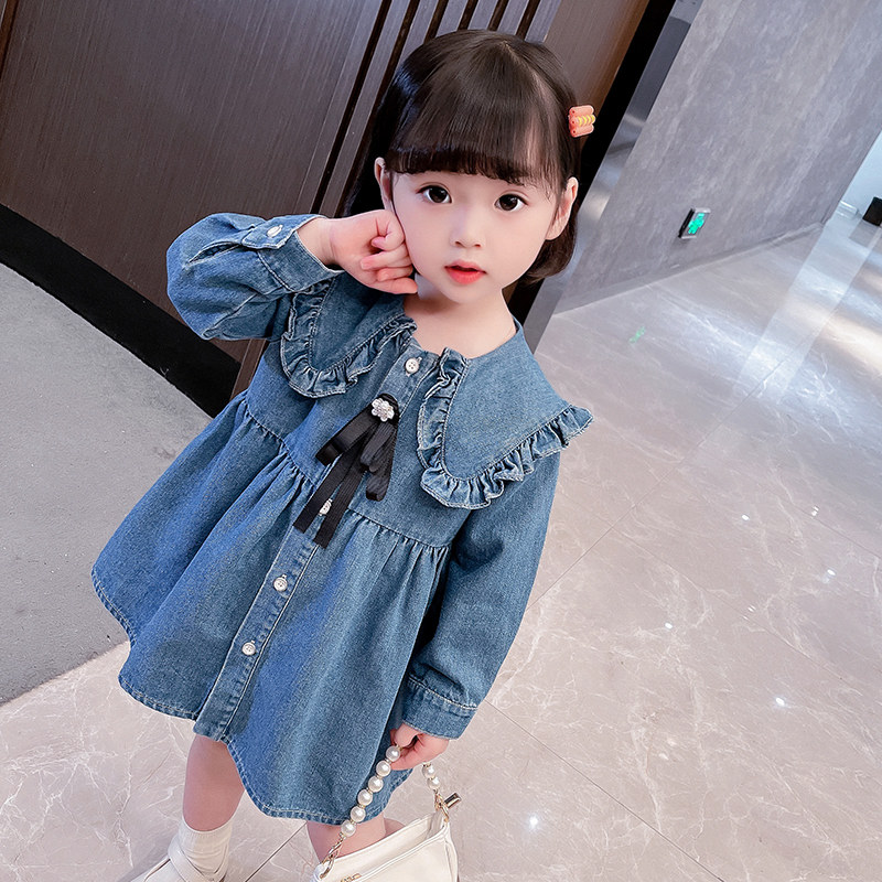 女宝宝秋装牛仔连衣裙新款婴儿长袖牛仔裙子女童春秋洋气小童裙子