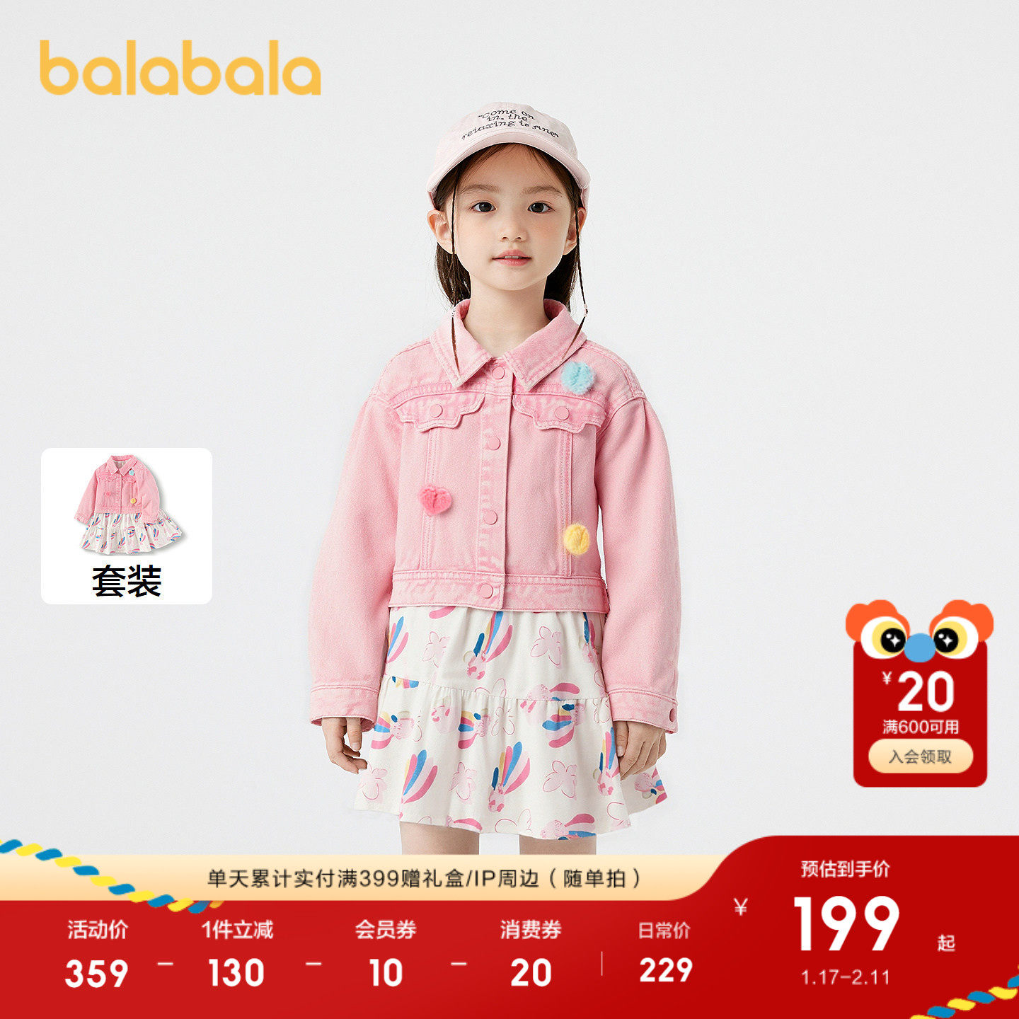 巴拉巴拉宝宝连衣裙子套装女童短牛仔两件套2025秋装童装儿童甜美
