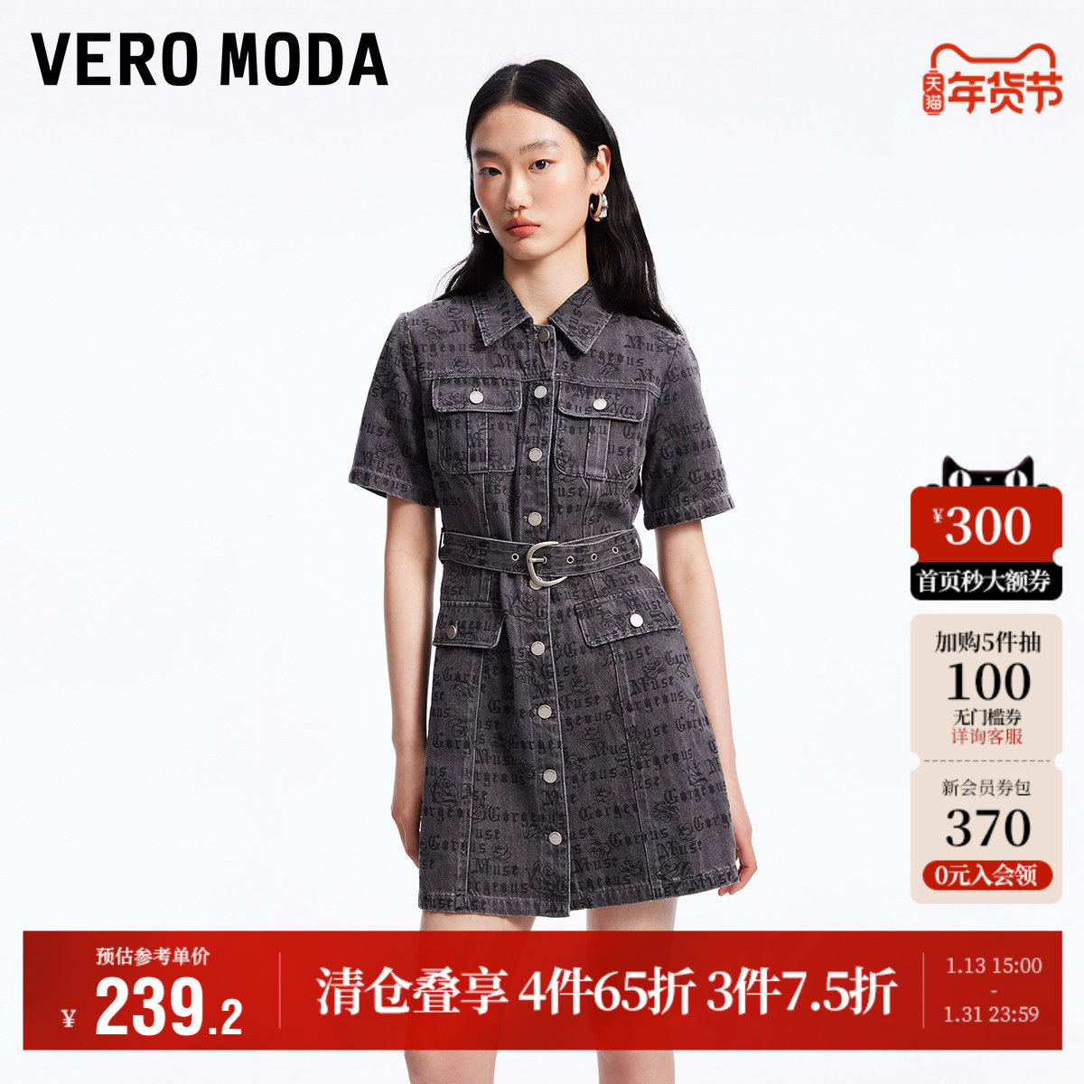Vero Moda奥莱牛仔连衣裙秋冬新款休闲百搭字母印花衬衫裙子短袖