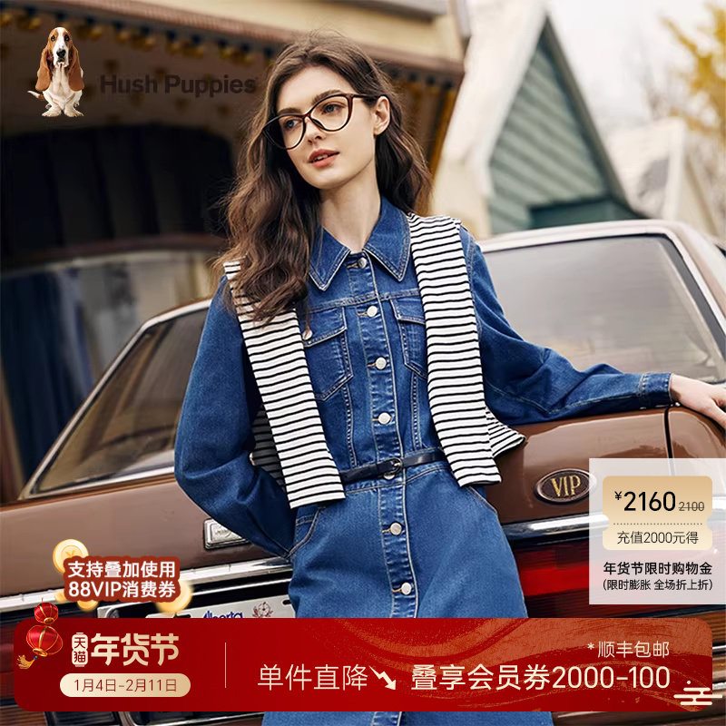 【挺括易打理】暇步士女装休闲通勤牛仔连衣裙秋季弹力垂感牛仔裙