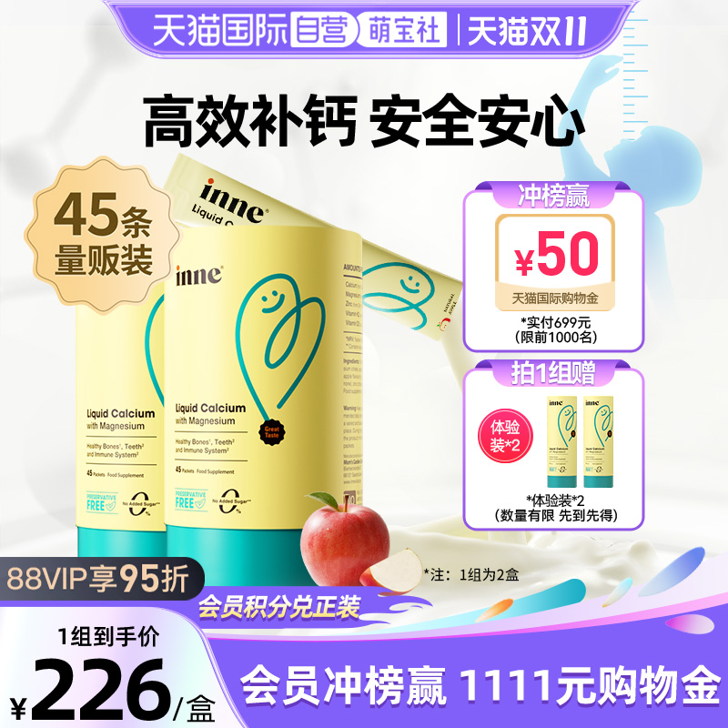 【自营】inne因你小金条钙镁锌婴幼儿童液体钙宝宝补钙 45条/罐*2
