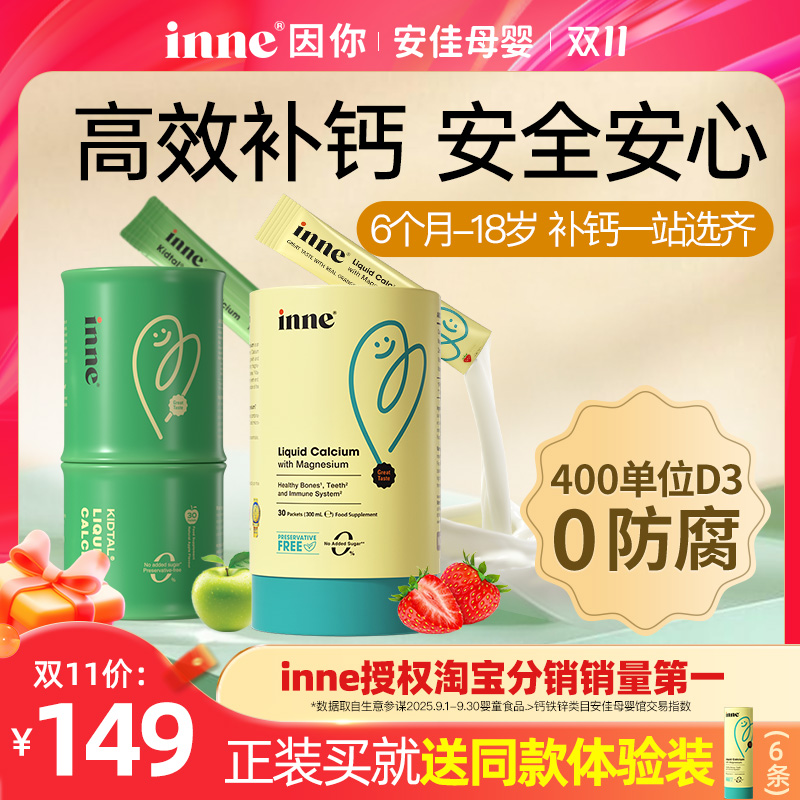 inne因你新升级婴幼儿钙镁锌赖氨酸竹节钙儿童液体钙宝宝补钙d3K2