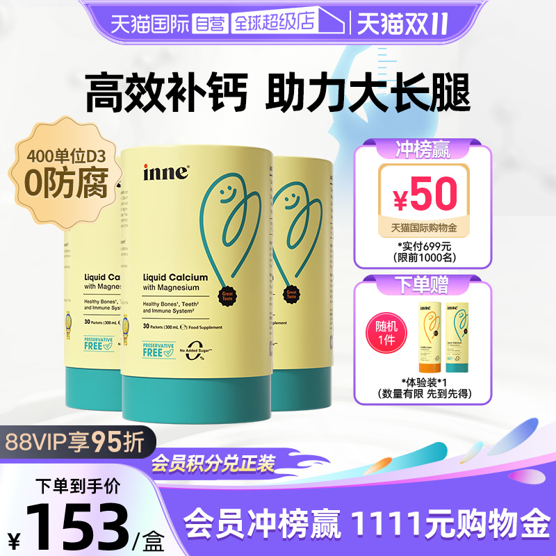 【百亿补贴】inne因你小金条钙镁锌儿童液体钙婴幼儿宝宝补钙*3