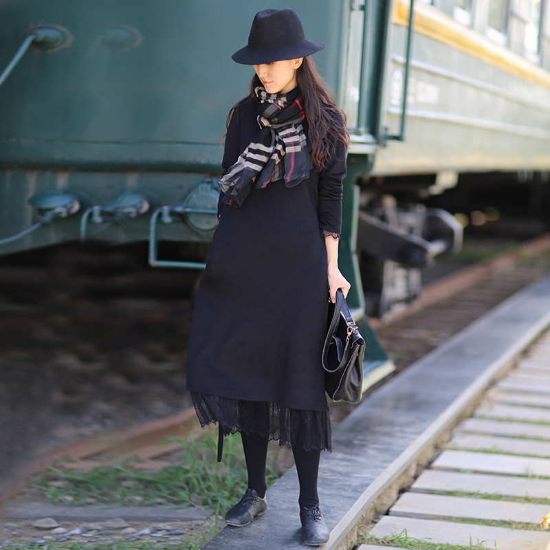 - 长款秋冬毛线连衣裙