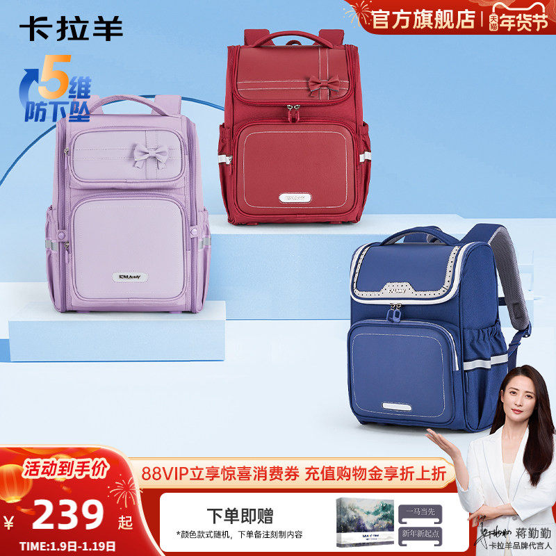 卡拉羊1-4-6年级小学生减负防下坠大嘴书包大容量轻便男双肩包女