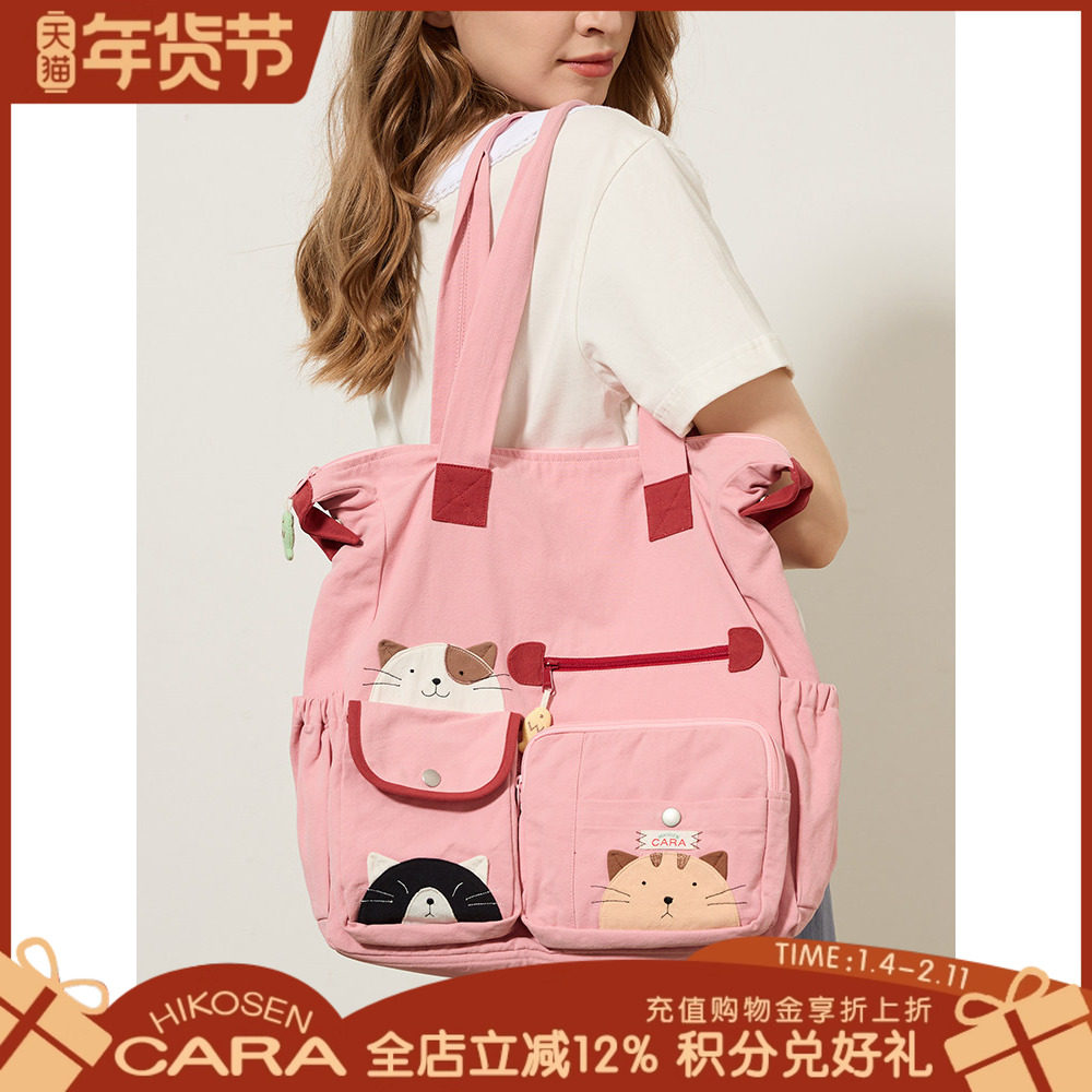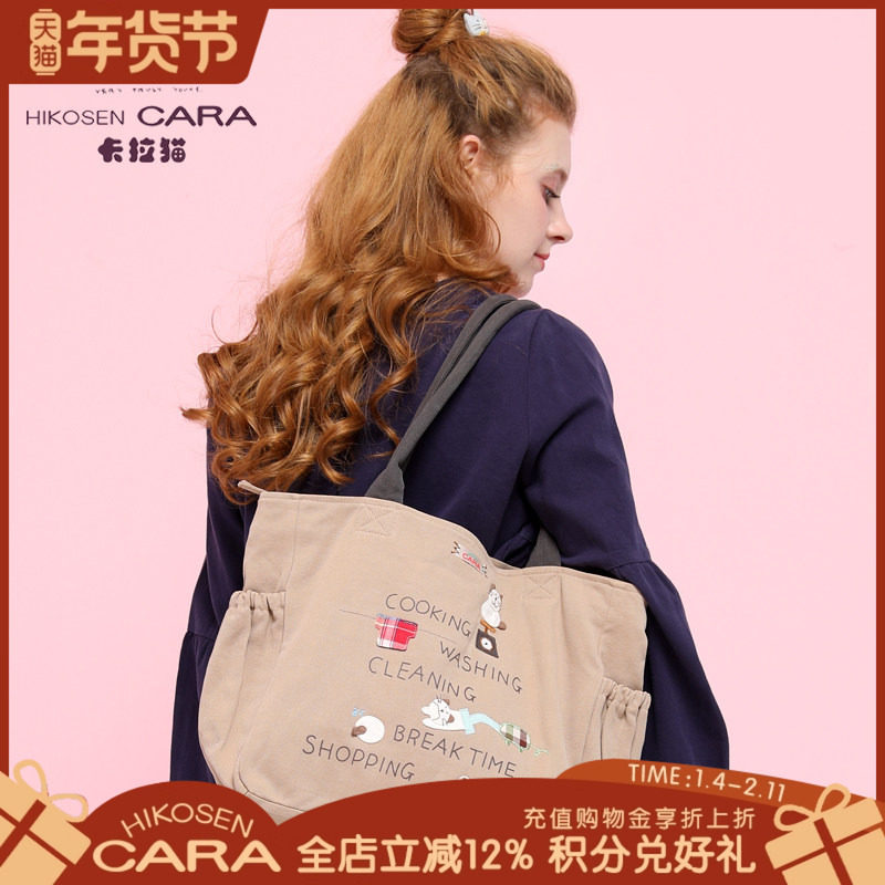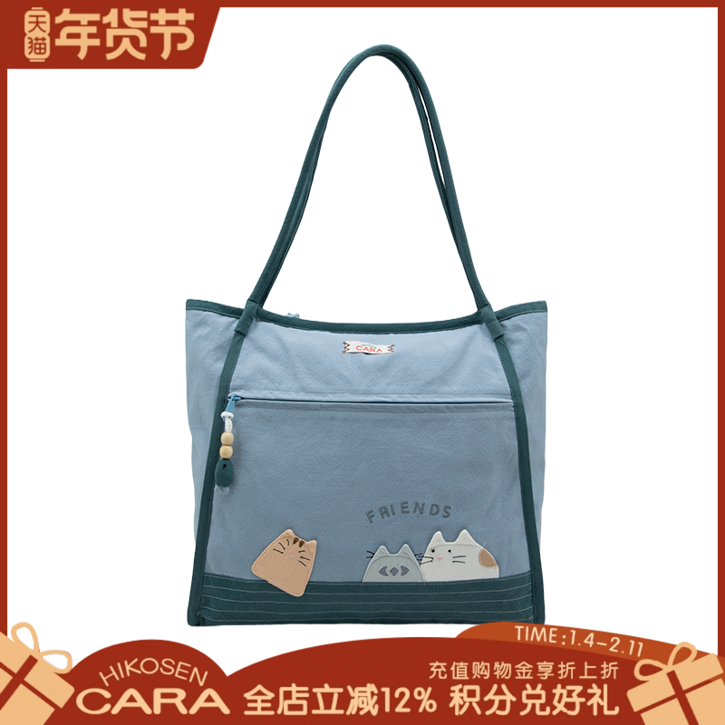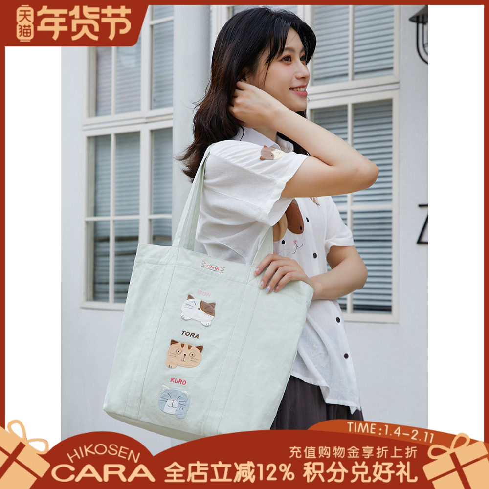 HIKOSEN CARA卡拉猫卡通帆布包女包单肩包大容量手提包休闲大包包