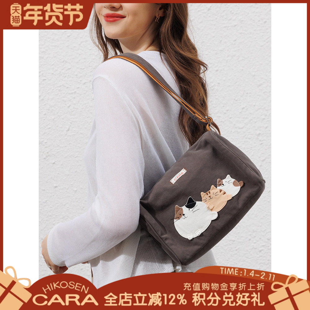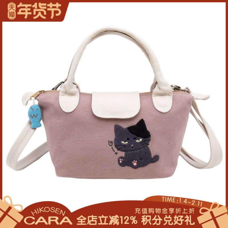 HIKOSEN CARA卡拉猫单肩包日本经典猫咪帆布大容量女可爱手提包袋