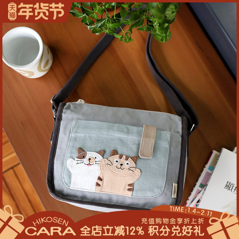 HIKOSEN CARA卡拉猫三只小猫斜挎包帆布女生可爱长款单肩包小方包
