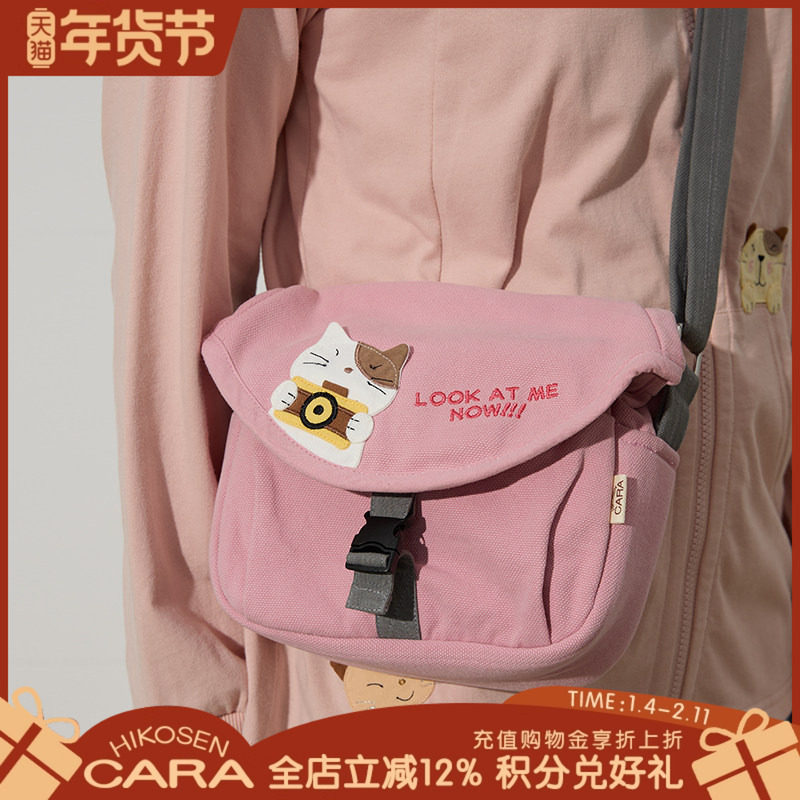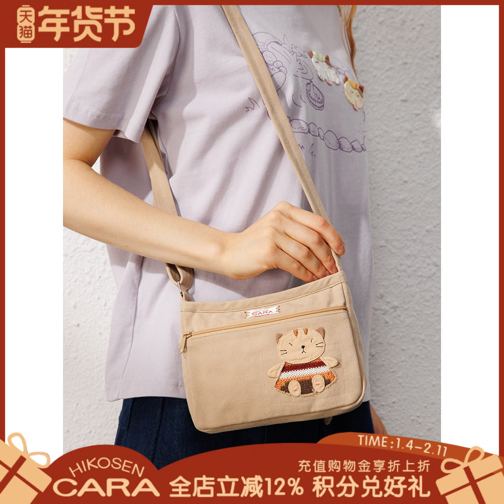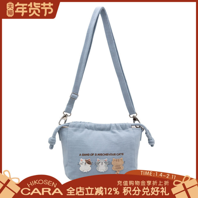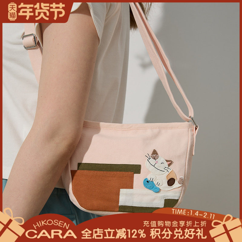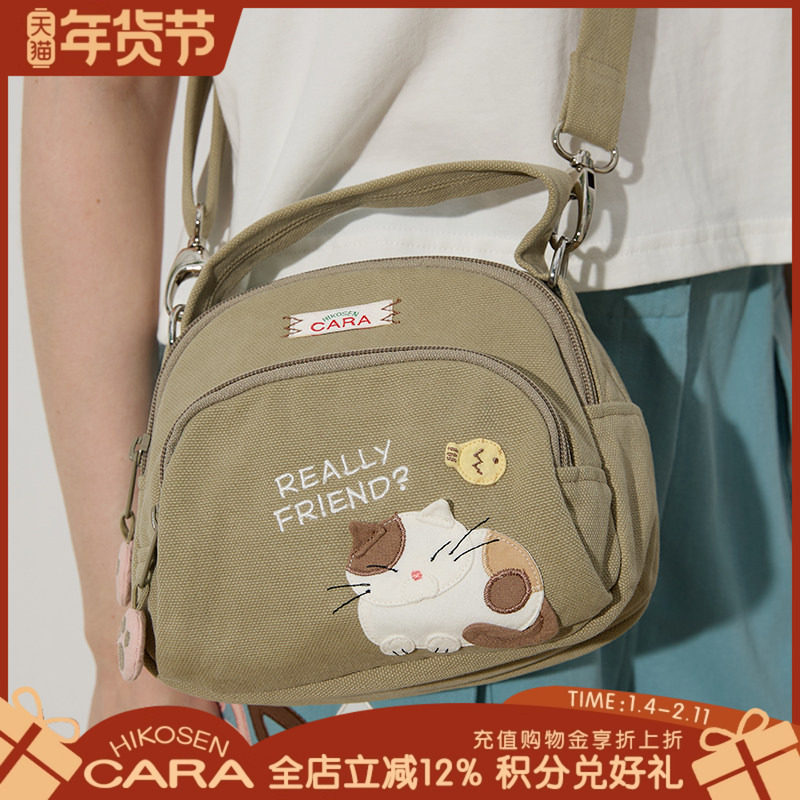 HIKOSEN CARA卡拉猫三只小猫斜挎包可拆卸调节轻便收纳帆布包包女