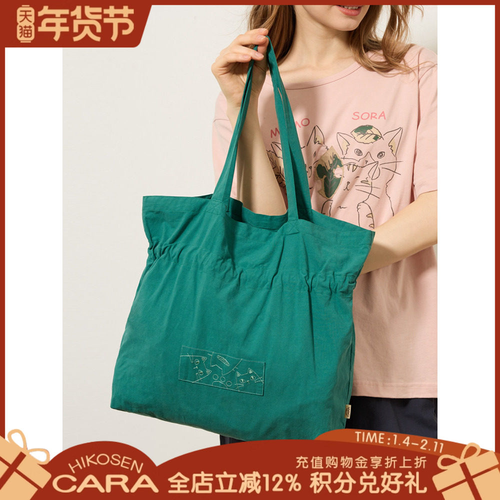 HIKOSEN CARA卡拉猫单肩包纯色大容量三只猫猫手提布艺帆布包女