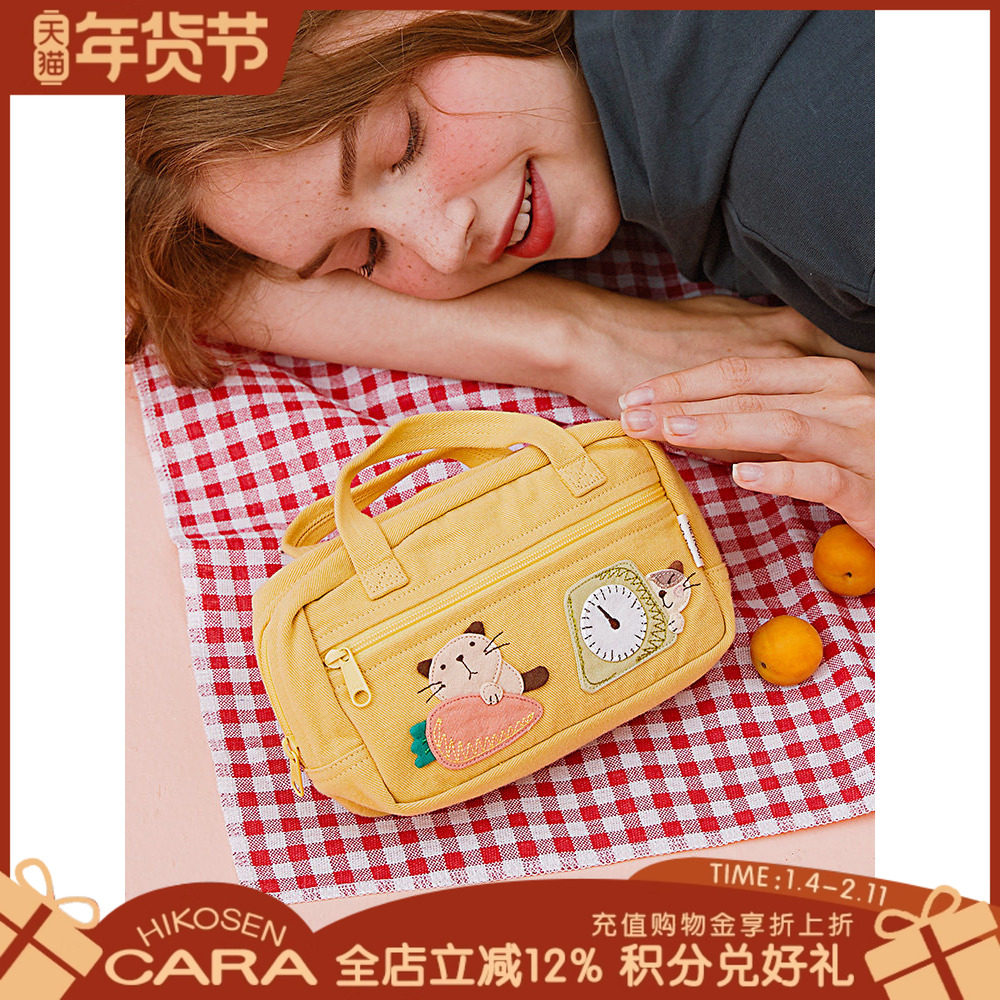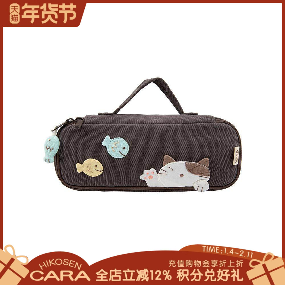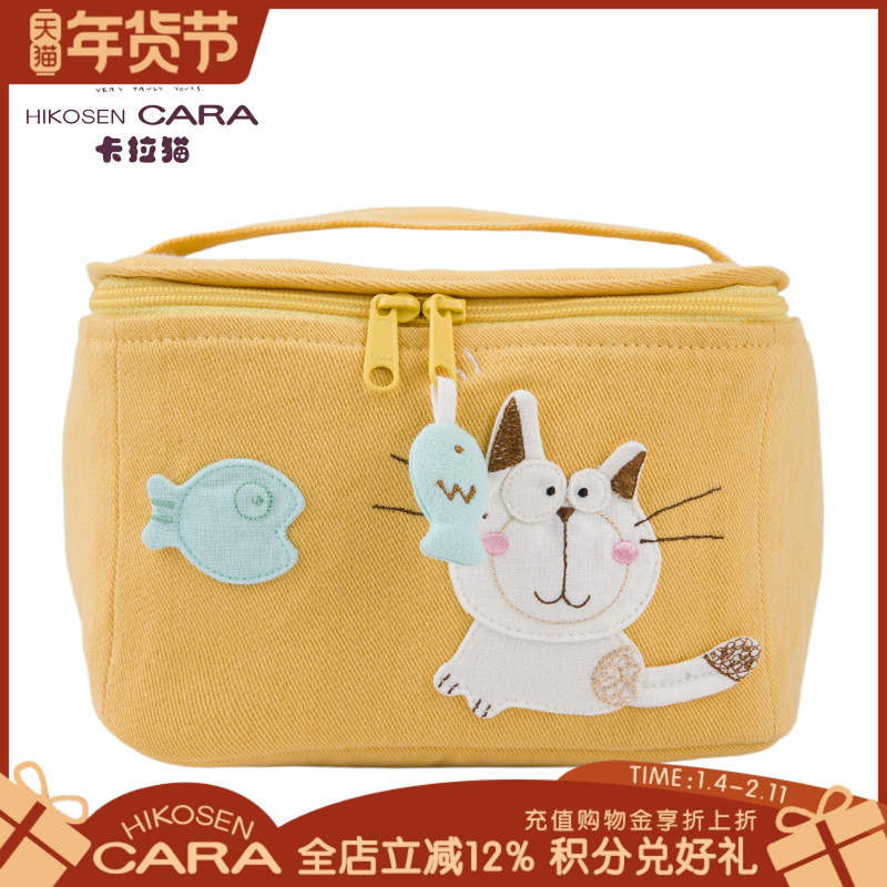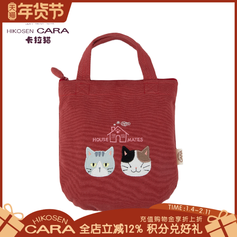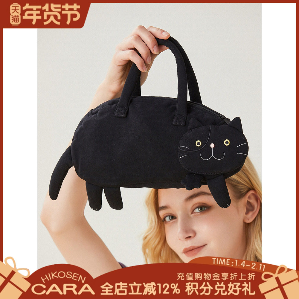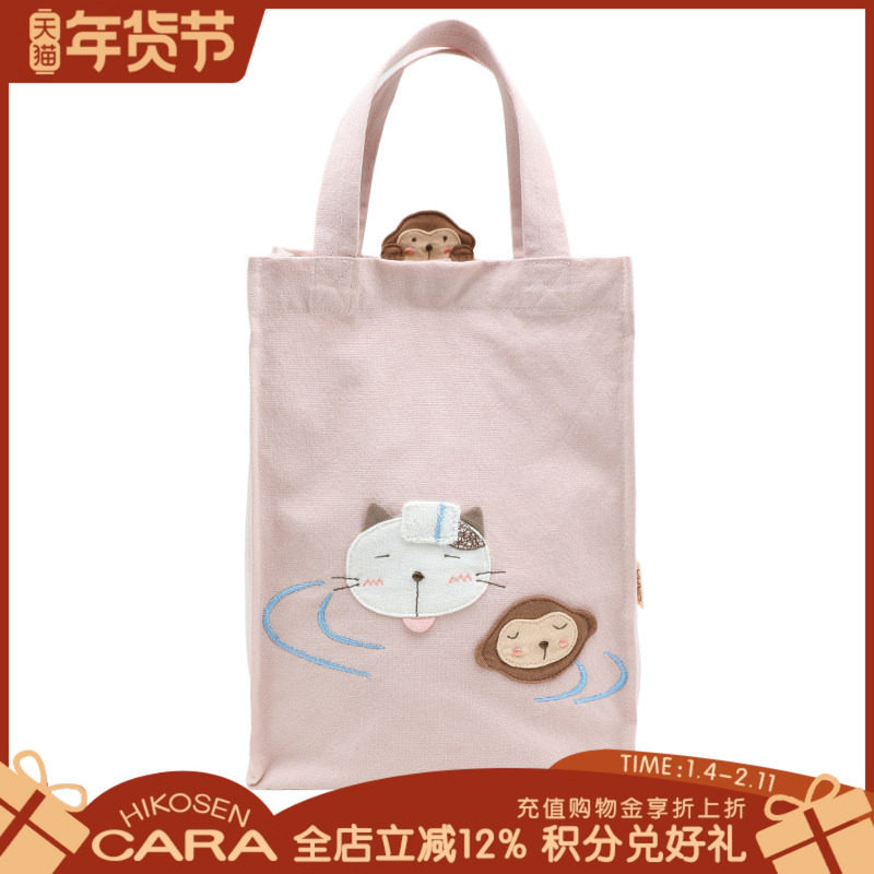 HIKOSEN CARA卡拉猫手提包日本原创设计化妆袋帆布可爱百搭手拎袋
