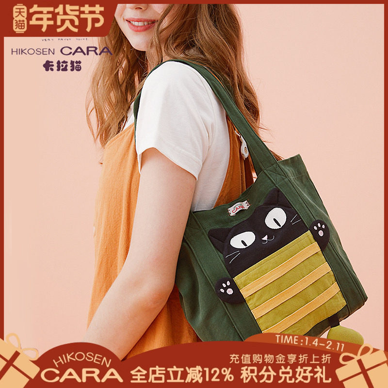 HIKOSEN CARA卡拉猫卡通可爱猫咪帆布包托特女包单肩手提包女包袋