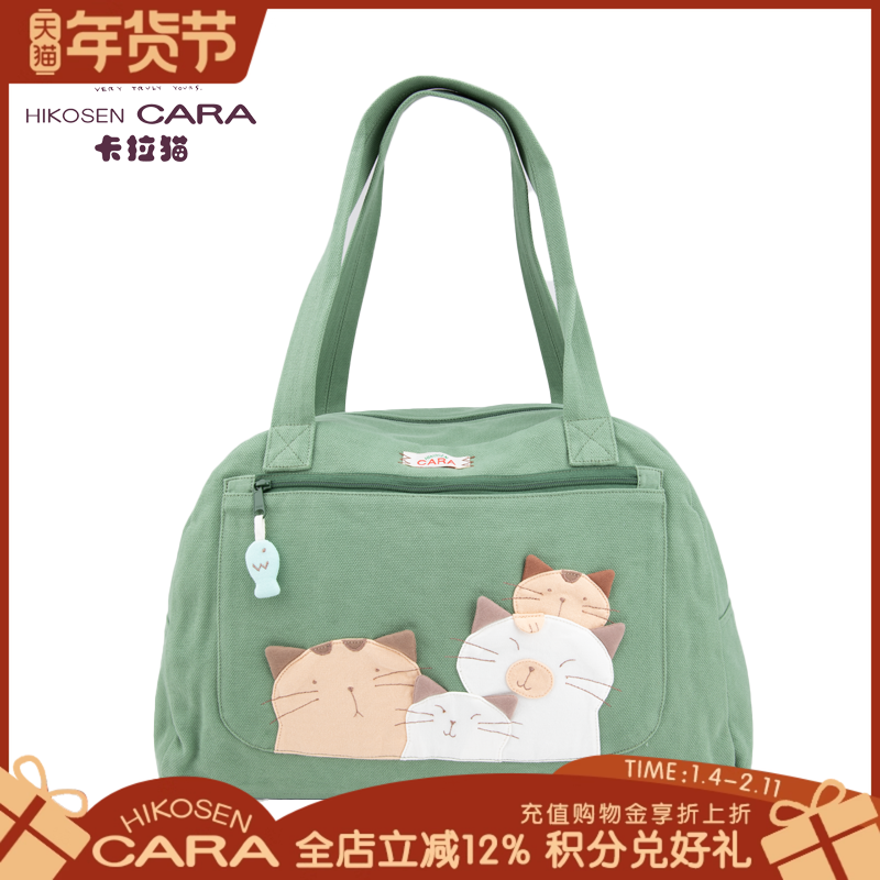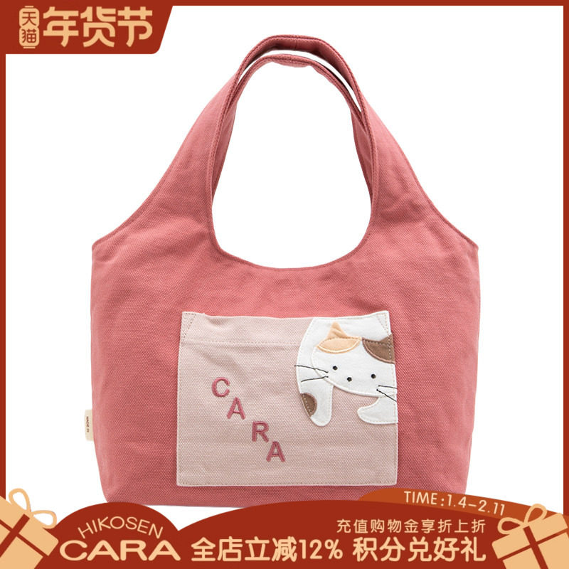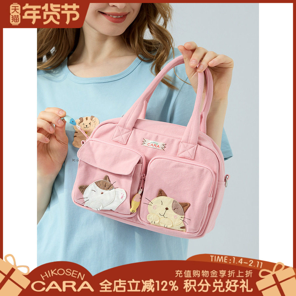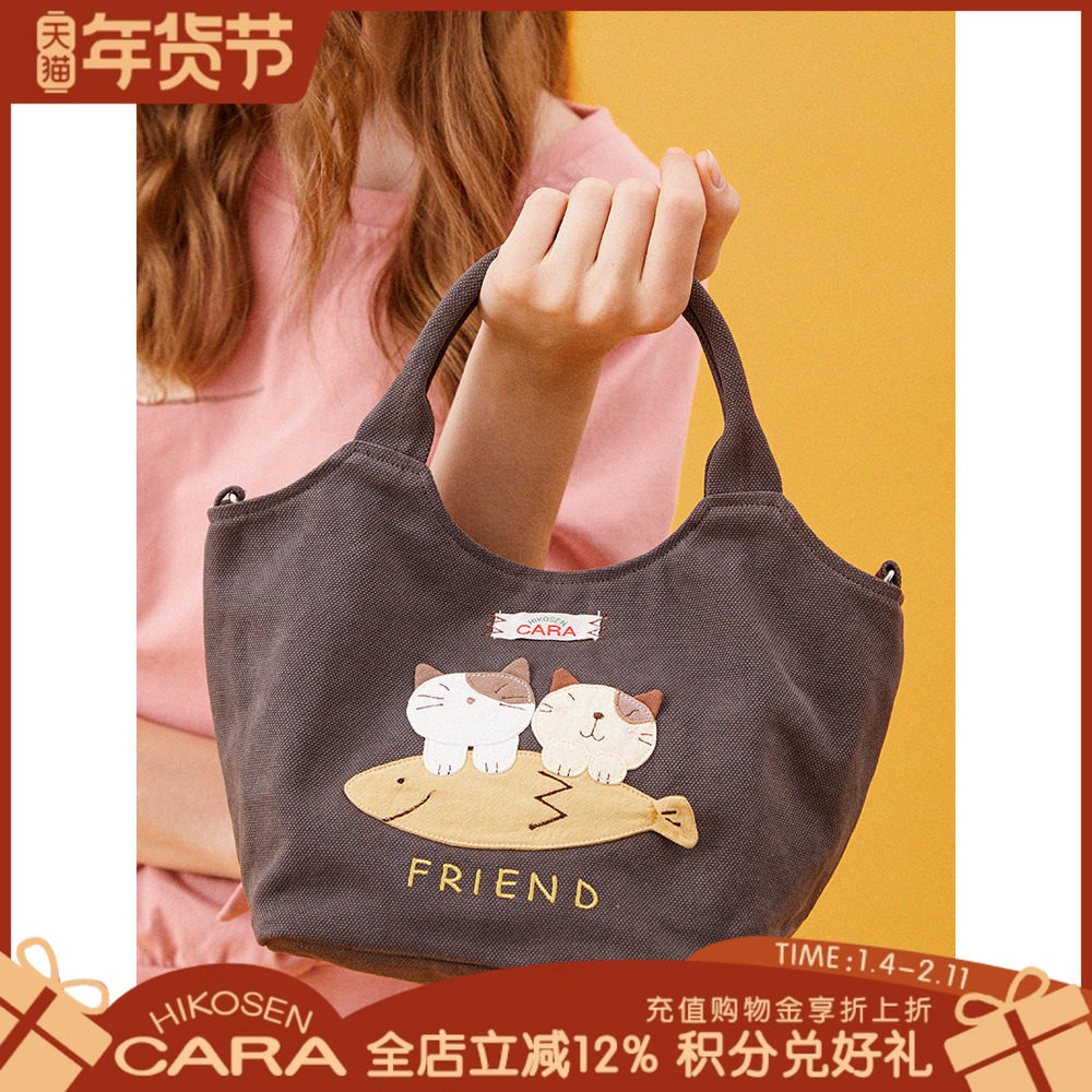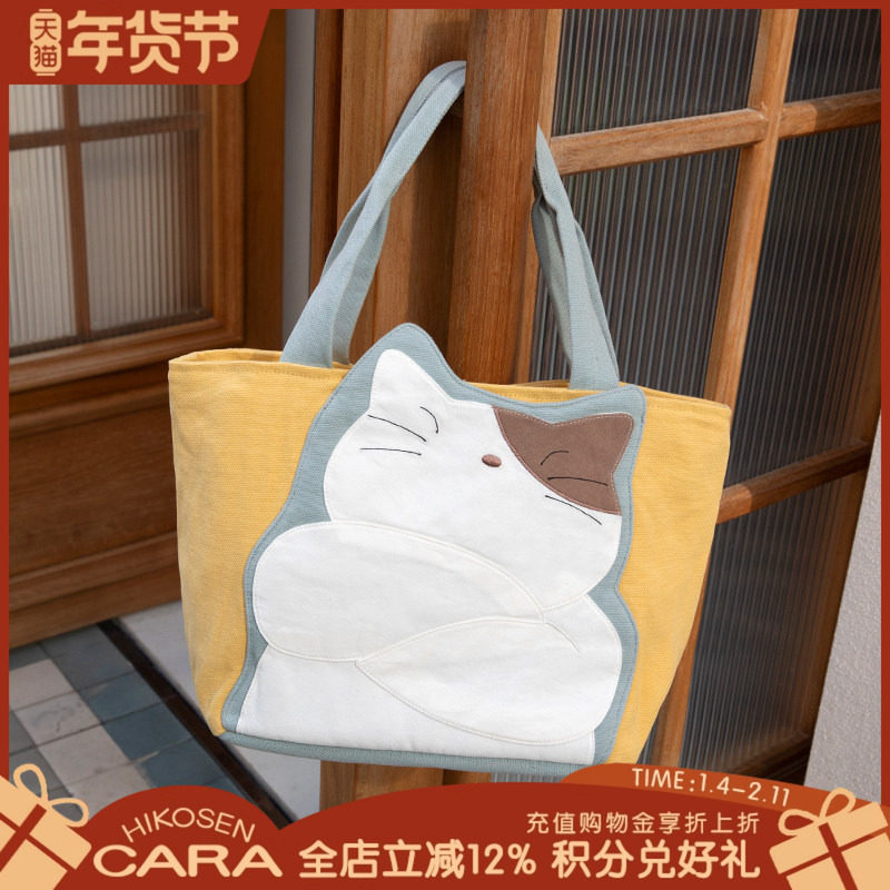 HIKOSEN CARA卡拉猫手提包外出手拎日系卡通猫猫帆布女原创便携包