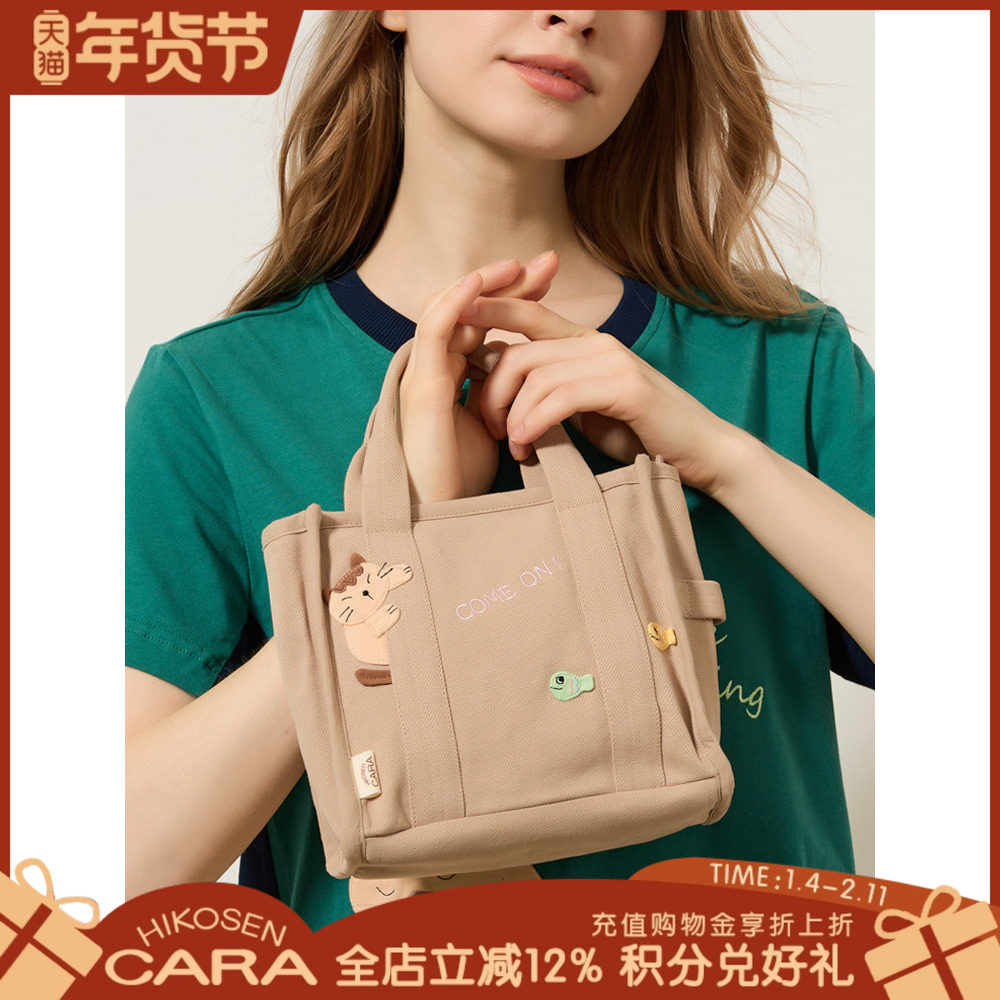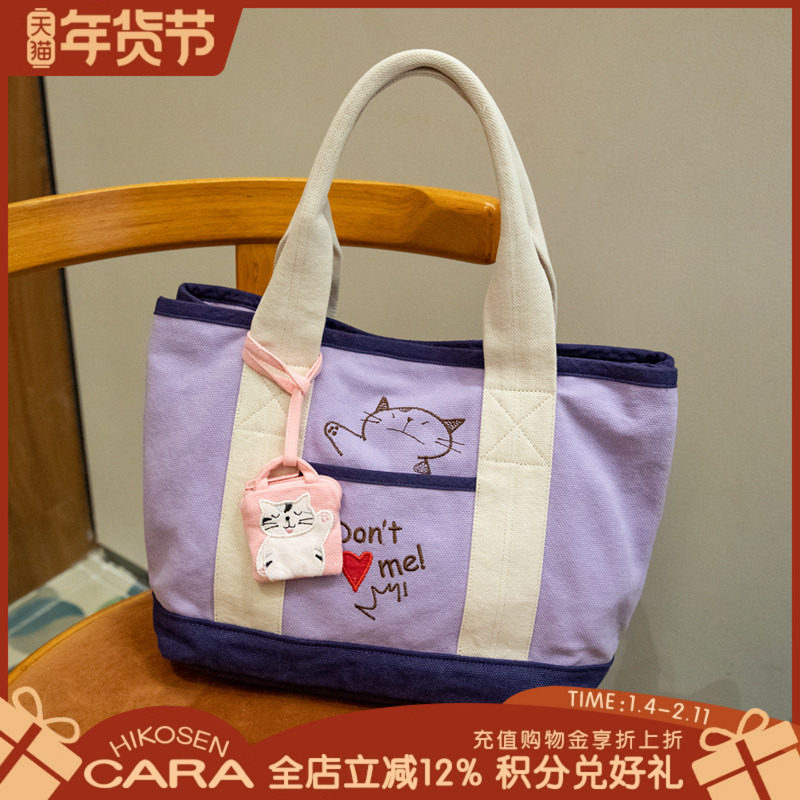 HIKOSEN CARA卡拉猫新款可爱猫咪手提包帆布包女通勤上班族手拎包