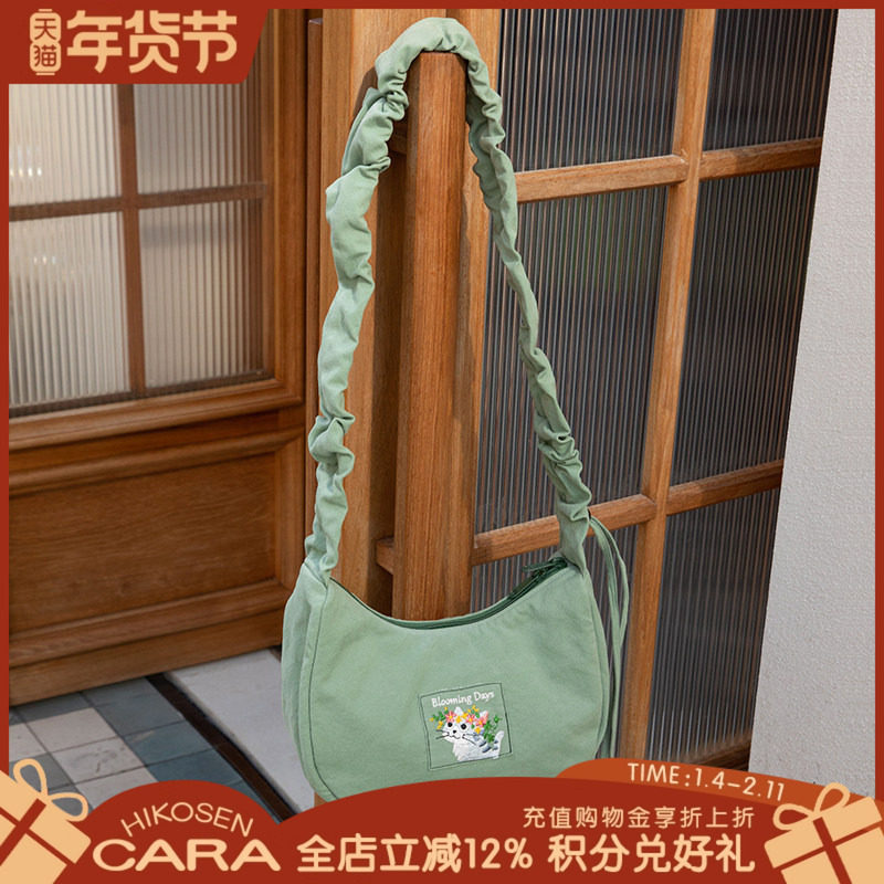 HIKOSEN CARA卡拉猫新款花仙子抽褶斜挎包设计感百搭帆布女式小包