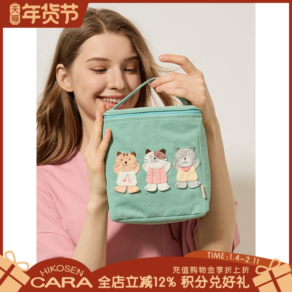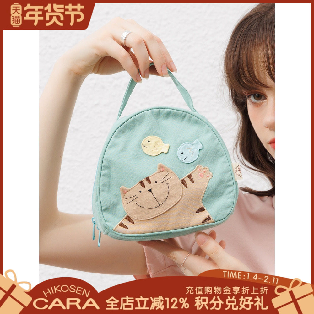 HIKOSEN CARA卡拉猫便当包猫咪可爱糖果色帆布女日系化妆包手拎包
