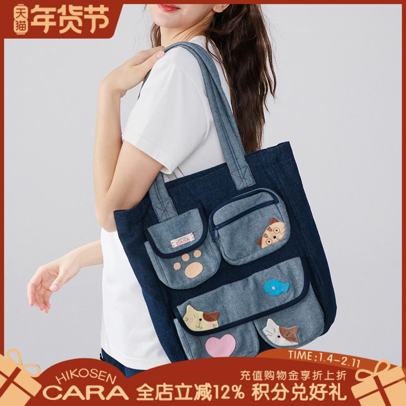 HIKOSEN CARA卡拉猫牛仔单肩帆布包ins风多功能大容量女手提包
