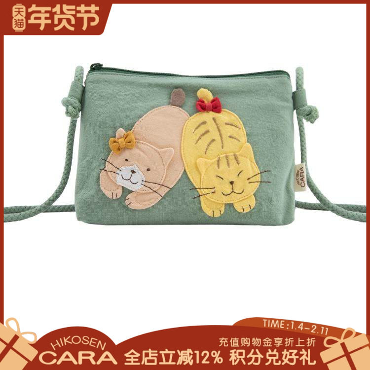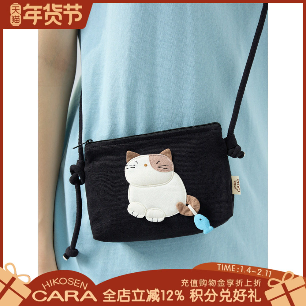 HIKOSEN CARA卡拉猫迷你斜挎包帆布棉制可爱猫咪女单肩小包手机袋